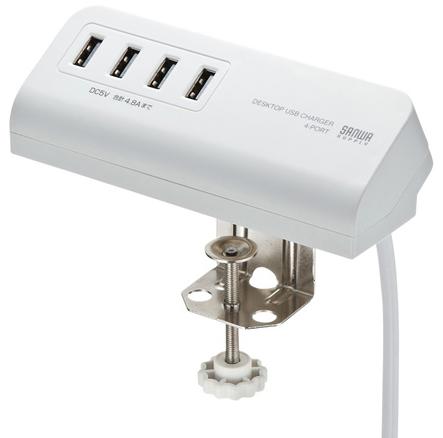 サンワサプライ ACA-IP50W クランプ式USB充電器(USB4ポート・ホワイト)[ACAIP50W] 返品種別A