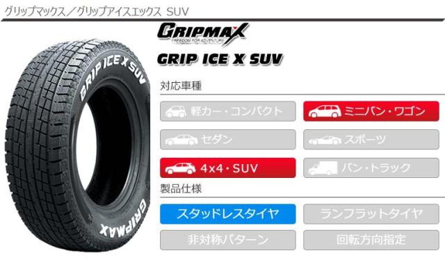 195/80R15 195/80-15 1958015 15インチ win1976gicexsuv GRIP ICE X SUV WL GRIP MAX GRIPMAX GRIPICEX ホワイトレター 正規品 冬タイヤ 冬用タイヤ スタットレスタイヤ すたっとれす 雪 みぞれ タイヤ一番 タイヤサイズ 溝 タイヤ交換 タイヤこうかん タイヤくみかえ 組み換え タイヤ取付対象 タイヤ取付可能 タイヤ交換可能 studlesstire tiret4p