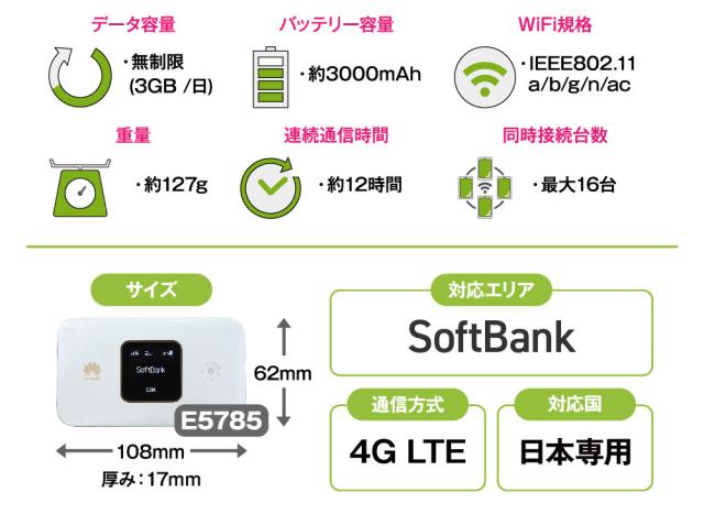 ポケットwifi レンタル 無制限 90日 E5785 日本国内専用 往復送料無料 即日発送 ソフトバンク 空港 受取 wi-fi ルーター