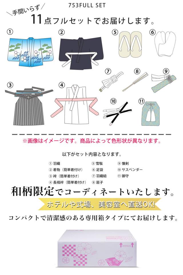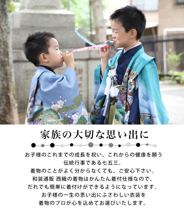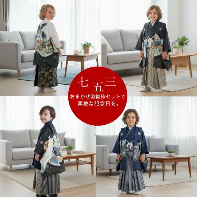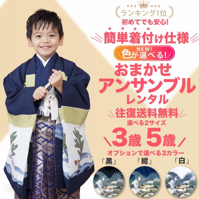 おまかせ 和柄限定 レンタル 3歳 5歳 七五三 色選べます かんたん着付け 男の子 アンサンブル 羽織袴 フルセット 貸衣装 五歳