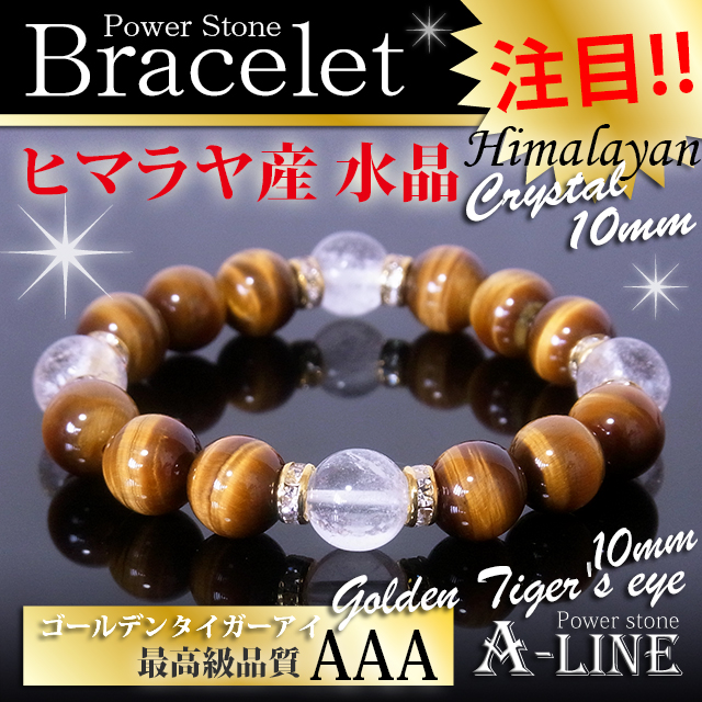 パワーストーン ブレスレット 強力な魔除けや浄化に ヒマラヤ産水晶10mm&AAAタイガーアイ10mm PW-3442