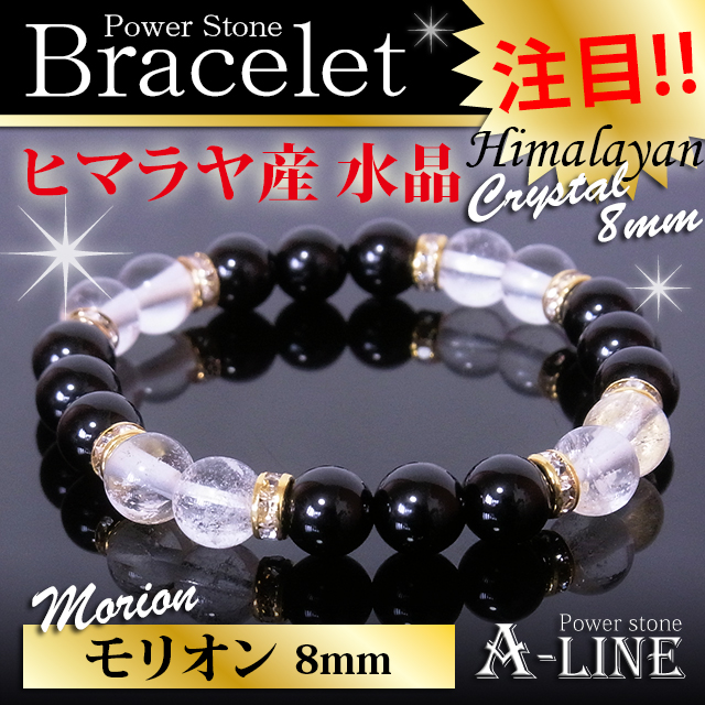 送料無料 パワーストーン ブレスレット 強力な魔除けや浄化に ヒマラヤ産水晶8mm&モリオン8mm PW-3443