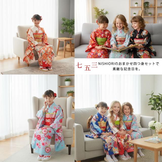 七五三 おまかせ 【レンタル】 四つ身 着物 フルセット【7歳 貸衣装 七歳 7才 子供 女児 和服】【往復送料無料】色柄 お任せ 福袋 女の子 753