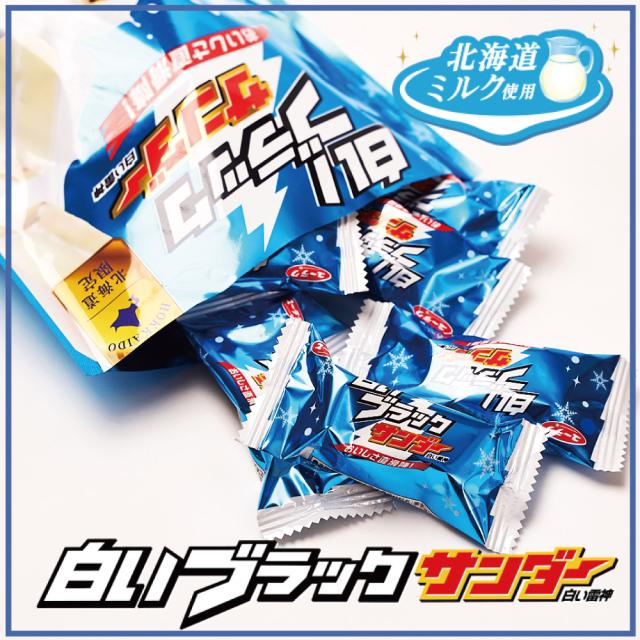 | 商品説明 | 「ブラックサンダー」北海道限定、「白いブラックサンダー」 ほろ苦ココアクッキーとミルクチョコレートの絶妙なバランスとザクザク食感がクセになる!センターチョコレートに焦がしバターオイルを配合し、まろやかなコクと香ばしさがアップしました。 |