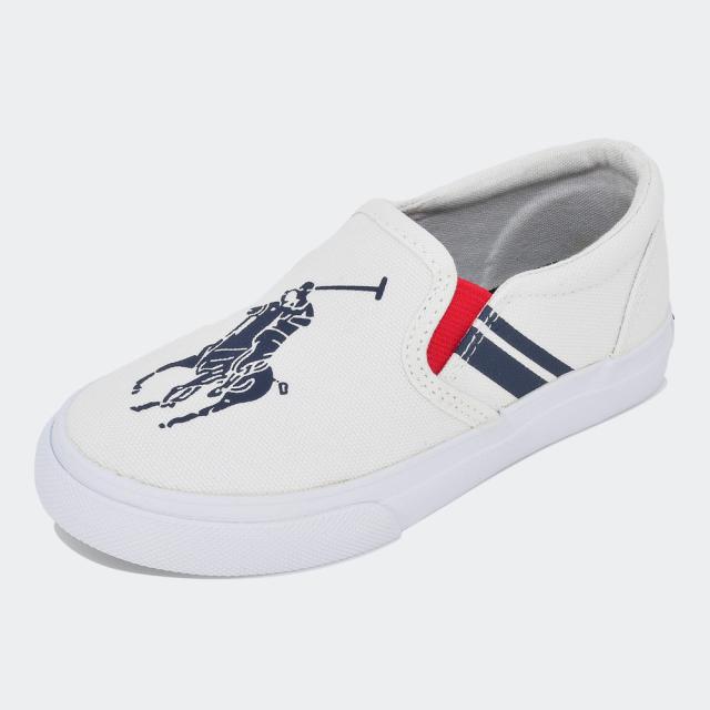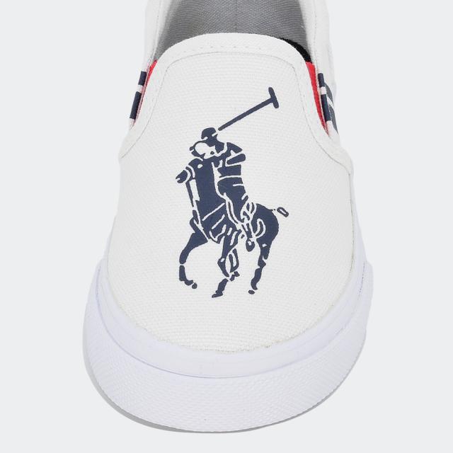 1970年代アメリカNY発祥のファッションブランドPolo Ralph Lauren (ポロラルフローレン)からキャンバス素材のシンプルな紐なしタイプのスニーカーが登場。