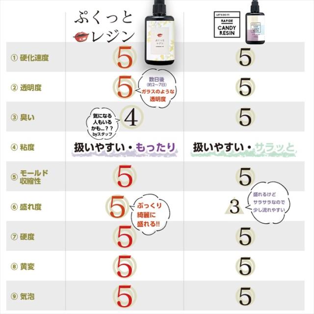 - 以前、お試しで使ってみたのですが。粘度も良く扱いやすいので、色々なレジン作品に使っています。ありがとうございました。