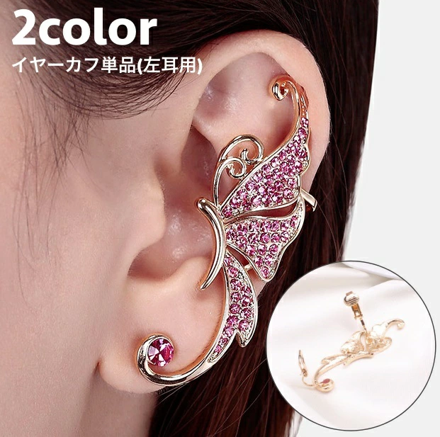 ★ 蝶々イヤリングタイプ イヤーカフ ★ 蝶翼形状 ジュエリー 耳に挟む イヤリング ピアス クリップ 片耳用 アクセサリー 2色 K62