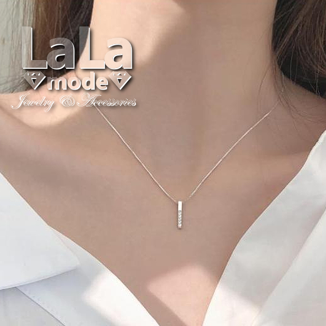 ネックレス レディース スティック バー 棒 タッセル ピンクゴールド プラチナ シルバー CZダイヤモンド AAAA キュービック ジルコニア スターリング シルバー ロジウムコーティング仕上げ アレルギー対応 送料無料 プレゼント 人気 シンプル アクセサリー ジュエリー