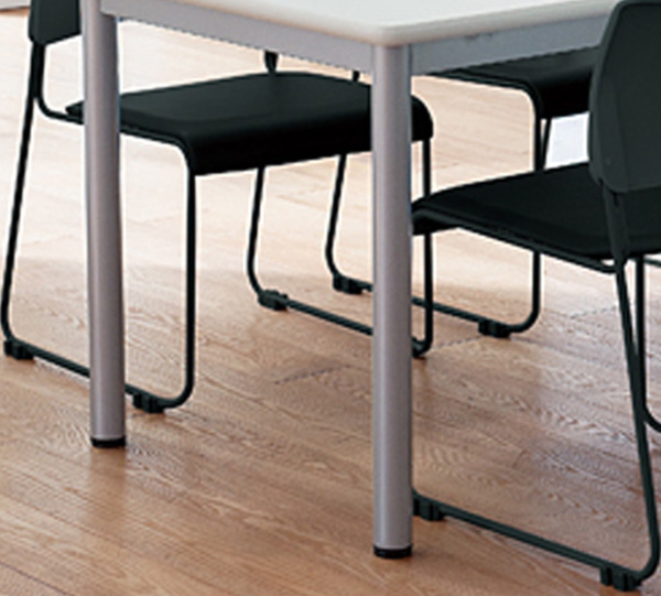 テーブルの脚部は、丈夫なスチール製でキズが付きにくい紛体塗装が施されています。アジャスター付きでテーブルのガタつきを解消します。