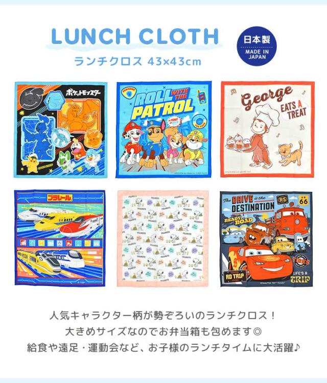 ランチクロス 小学生 お弁当包み スヌーピー プラレール ポケモン 子供用 43×43 給食 男の子 女の子 綿100% ナフキン 幼稚園 保育園 カーズ パウパトロール かわいい おしゃれ 女子 キッズ ランチョンマット ベイマックス おさるのジョージ 通学 通園 入園 入学