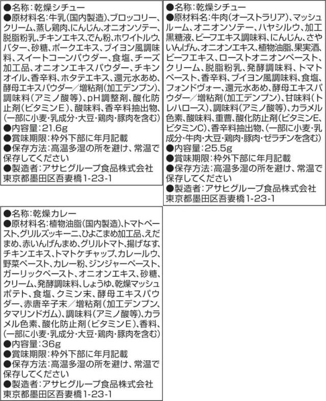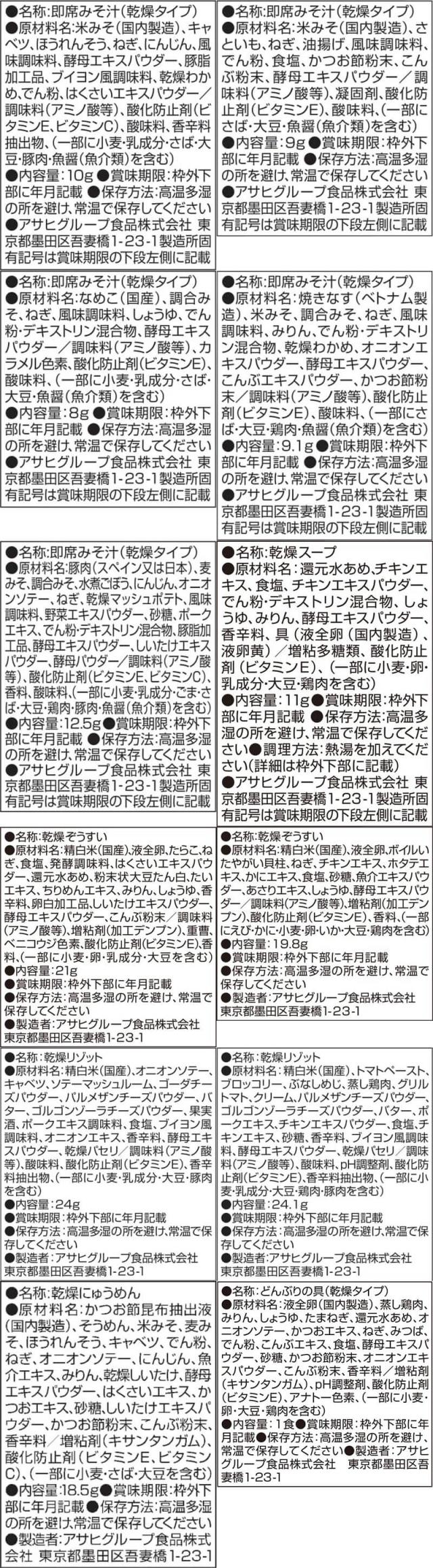 ■ Theうまみ 揚げなすの完熟トマトスープ 10g 3種のねばねば具材の和風スープ 5g 粒コーンとポテトのポタージュ 19.8g 3種のきのこの豆乳スープ 9.3g |