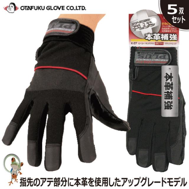 手袋 合成皮革手袋 おたふくPU-KING PLUS 5双セット K-37 作業手袋 超薄型 軽量 細かい作業 アテ付き フィット グリップ 機械組み立て 内装工 整備士 配送業