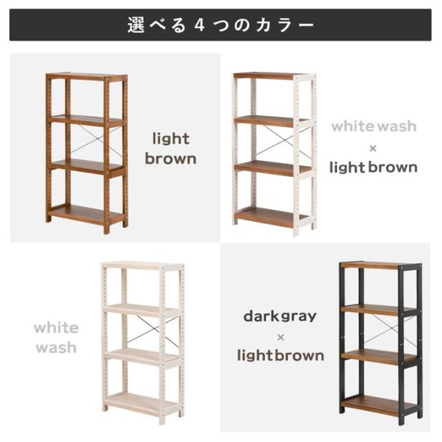 オープンシェルフ ディスプレイラック 収納棚 4段 幅60cm おしゃれ 天然木パイン材 木製 可動棚