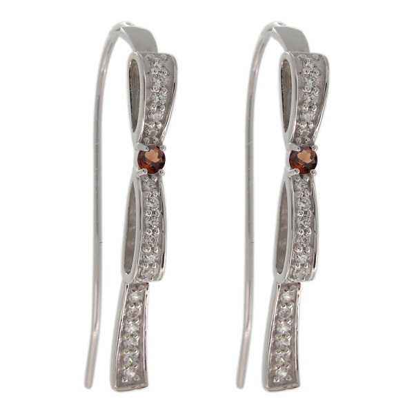 1月誕生石ガーネットを使用したプラチナ製の、リボンモチーフフックピアス(アメリカンフック)です。