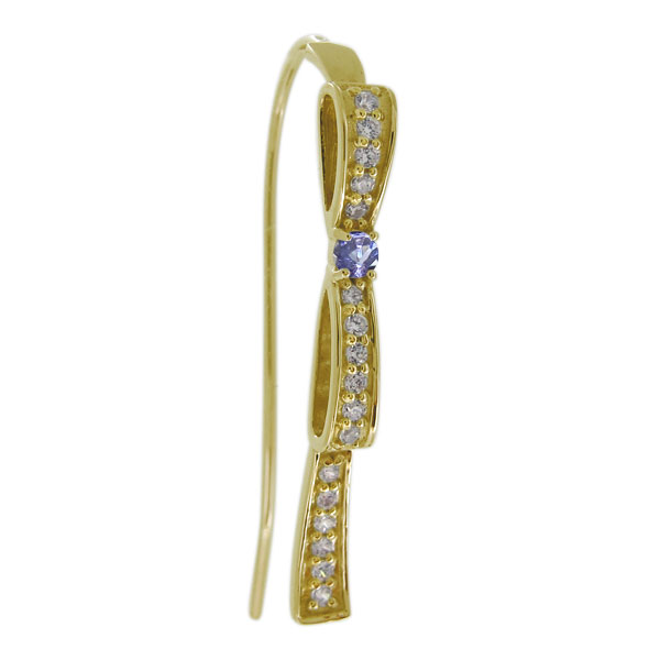 リボン ピアス レディース 10金 タンザナイト 12月誕生石 りぼん 片耳 フックピアス