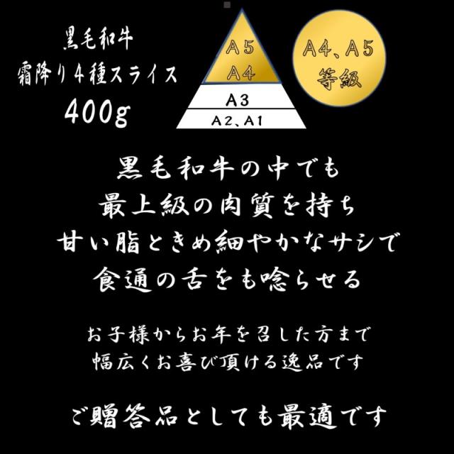 A4 A5 ランク 霜降り 特上スライス400g ギフト プレゼント 敬老の日 誕生日 御歳暮 御中元 すき焼き しゃぶしゃぶ 焼肉 高級 送料無料 母の日 父の日