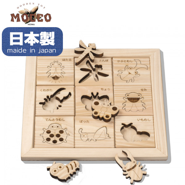 木のおもちゃ ヒノキの昆虫パズル NH-03 日本製 型はめ パズル 積木ゲーム 知育玩具 ギフト 出産祝い プレゼント 木製 平和工業 MOCCO