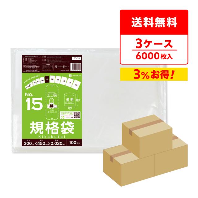 【まとめて3ケース】FC-15-3 規格袋 15号 0.030mm厚 透明 100枚x20冊x3箱 食品衛生法 RoHS指定 送料無料