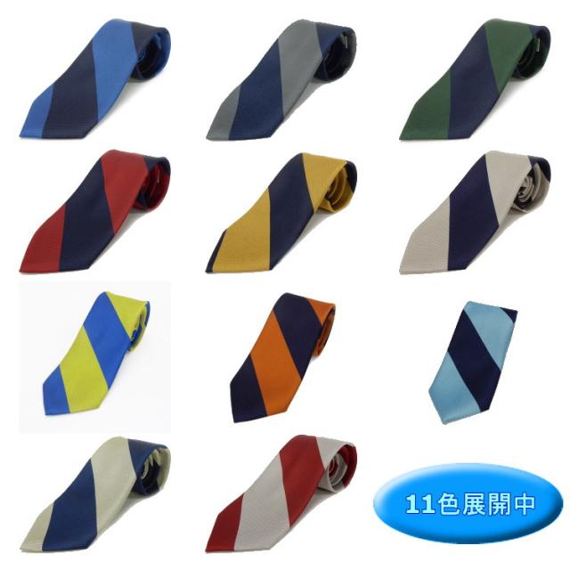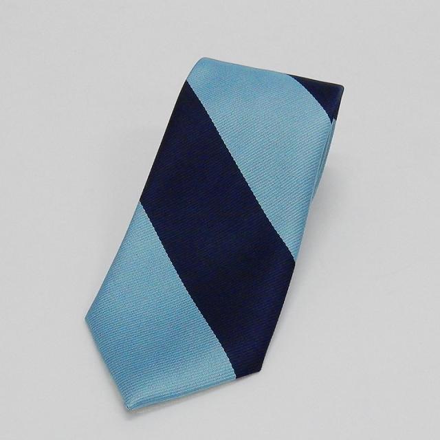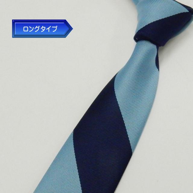 日本製 ロングタイプ ネクタイ 甲州織 濃紺×サックス/レップのワイドストライプ 太縞 洗濯機OK メール便OK BUN-F09-LONG