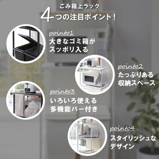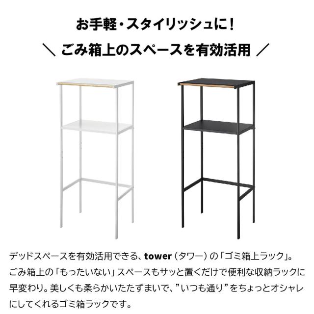 ゴミ箱上ラック タワー ホワイト 2859 幅55cm tower TOWER レンジ台 レンジボード レンジラック キッチンボード バー付き キッチンラック ゴミ箱収納 ペダル式 キッチン 収納 ラック シンプル 北欧 ゴミ箱 ダストボックス 山崎実業 YZ RL