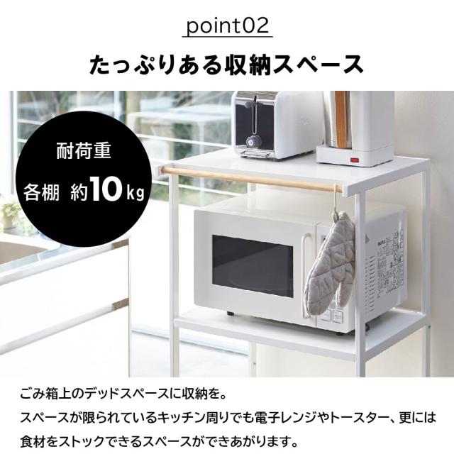 電子レンジ・炊飯ジャー・トースター・コーヒーメーカーなどが置ける便利なラックになっています。