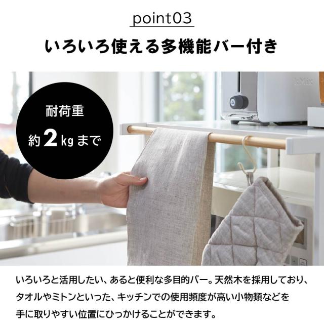 布巾や鍋つかみを掛けておくのに便利な多目的バー付き。