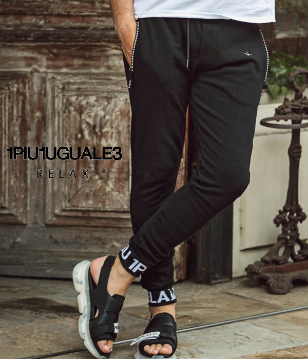 1PIU1UGUALE3 RELAX ウノピゥウノウグァーレトレ リブロゴジョガーパンツ スウェットパンツ メンズ ボトムス ジャージ カジュアル スポーツ 部屋着 秋冬 細身 スリム ブラック グレー レッド ギフト プレゼント