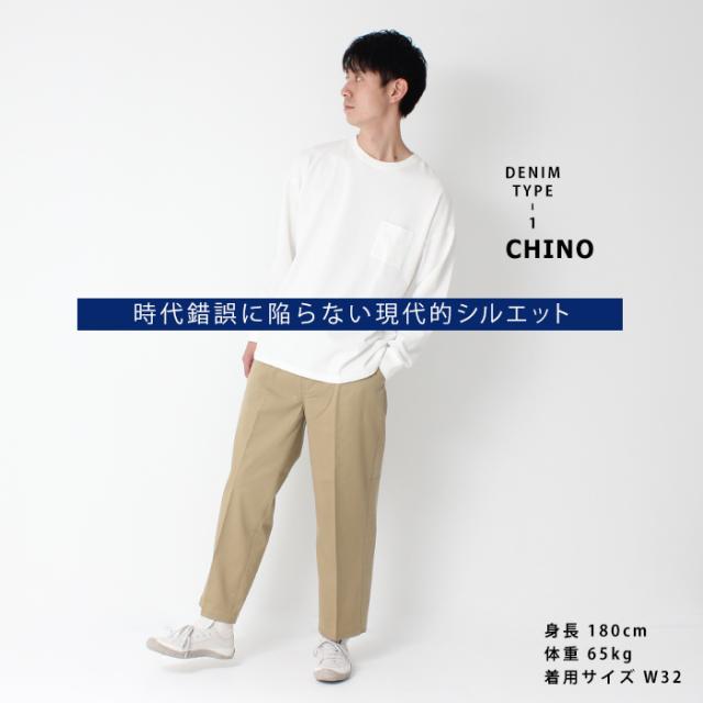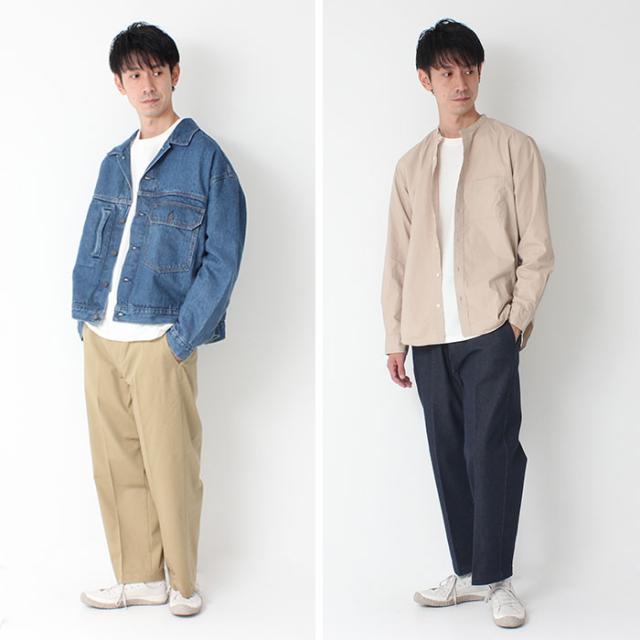 ストリートウェアの雰囲気と、日曜日のちょっとした外出に穿くパンツの雰囲気も漂わせるワイドレッグチノパンツ。