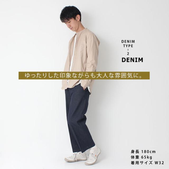 シルエットは股上が普通で、腰回りに少しだけ余裕を持たせ、ヒザからスソにかけて少し細くなったレギュラーテーパード。