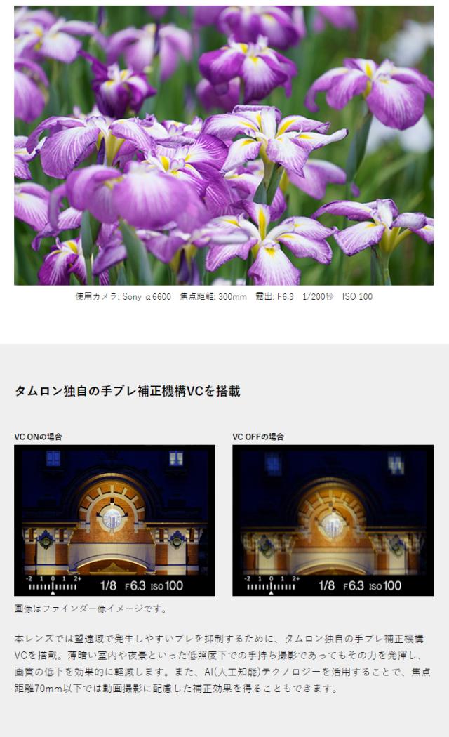 AF駆動にはタムロン独自のリニアモーターフォーカス機構VXDを採用しました。高倍率ズームレンズとして最高レベルの速度・精度・応答性を兼ね備えているため、超望遠300mm (35mm判換算450mm相当)であっても最短撮影距離から無限遠まで快適にピントを合わせることができます。