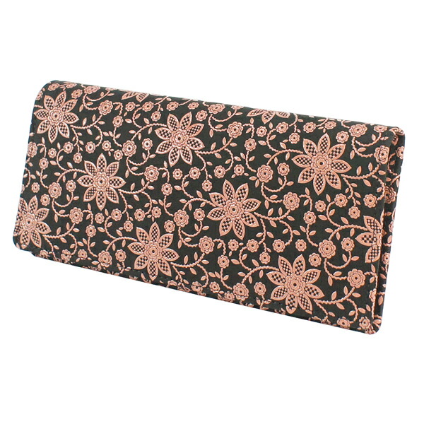 印伝 甲州印伝 印傳屋 上原勇七 財布 長財布 束入れ カードケース カード入れ 2529 クレマチス 黒地×ピンク漆 鹿革 花柄 ブランド 冬物 冬ギフト 福財布 贈り物 YM01