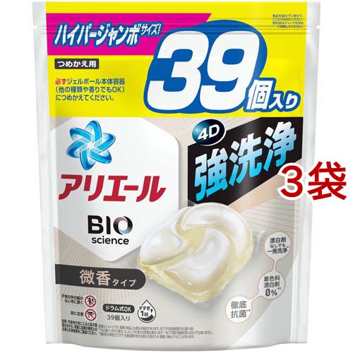 アリエール 洗濯洗剤 ジェルボール4D 微香 詰め替え ハイパージャンボ(39個入*3袋セット)[洗濯洗剤 その他]