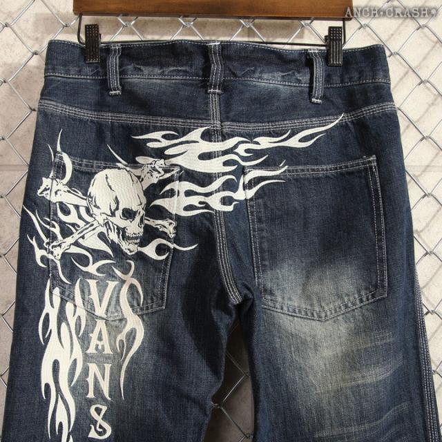 VANSON トライバルスカル 刺繍 デニムパンツ(SP-B-26)バンソン USED加工 ジーンズ