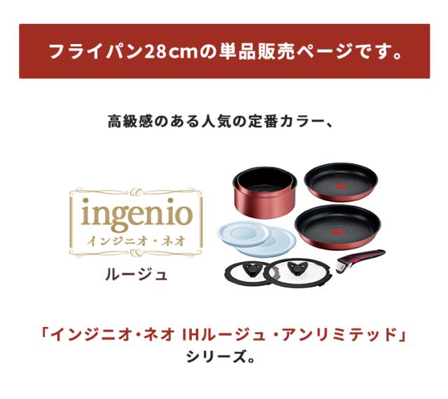 フライパン ティファール 取っ手が取れる T-fal インジニオ・ネオ IHルージュ アンリミテッド フライパン28cm IH・ガス火対応 レッド L38306 ingenio フライパン ティファール 取っ手が取れる コンパクト収納 IH対応 28cm ガス火 お知らせマーク こびりつきにくい 送料無料
