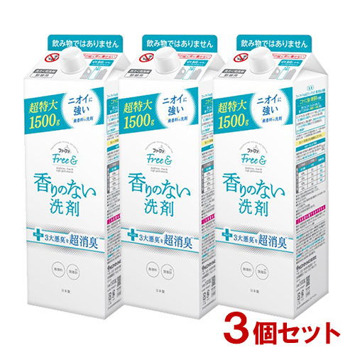 無香料 フリーアンド(Free&) 香りのない液体洗剤 エコパック 詰替 大容量 1500g×3個セット ファーファ(FaFa)【送料無料】