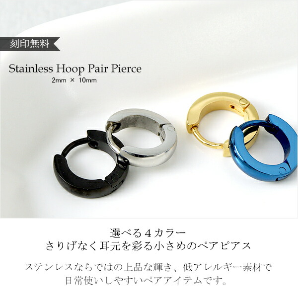 刻印無料 カラー ステンレス フープ ペアピアス 10mm (片耳用) ペアアクセサリー ペア フープピアス リングピアス ピアス サージカル