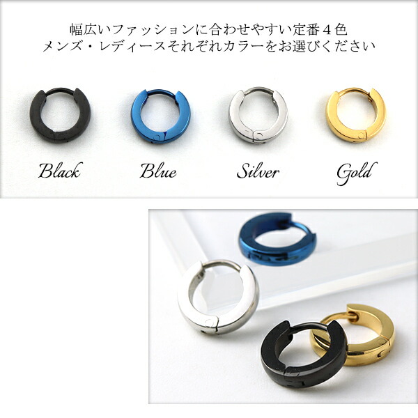 選べる全4色 カラー ステンレス フープ ペアピアス 幅2mm×10mm (片耳用)