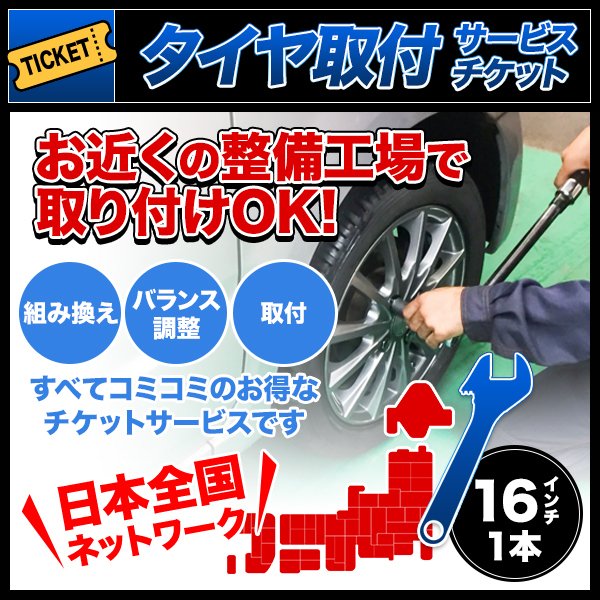 タイヤ交換サービスチケット 全国版 タイヤ組替 1本分 16インチ 組み換え → バランス調整 → 取付