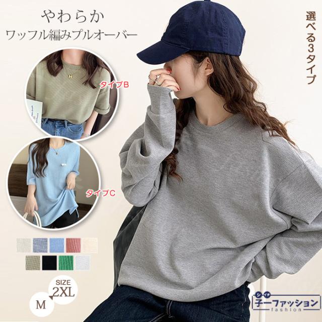 カットソー ロンT 選べる3タイプ 半袖 長袖 新作 トップス レディース 春 ワッフル ゆったり 大きいサイズ オーバーサイズ 半袖 長袖 ドロップショルダー プルオーバー ドロップショルダーボーダーカットソー 秋冬 バレンタイン