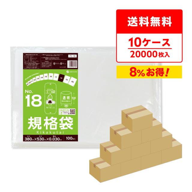 【まとめて10ケース】FC-18-10 規格袋 18号 0.030mm厚 透明 100枚x20冊x10箱 食品衛生法 RoHS指定 送料無料