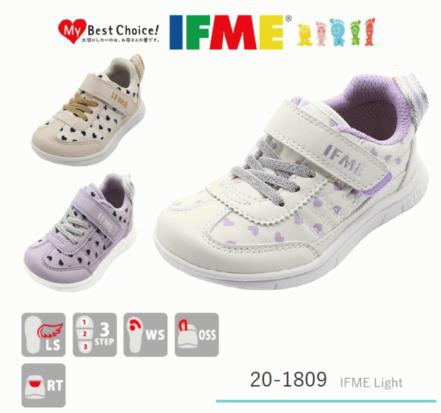 イフミー IFME 1809 キッズ ジュニア スニーカー イフミーライト シューズ 子供靴 女の子 ベルクロ ローカット 通園 普段履き ベージュ パープル ホワイト おしゃれ かわいい ハート キラキラ ラメ 白 黒 青 赤 コート 外反母趾 偏平足 反射材 15cm 16cm 17cm 18cm 19cm