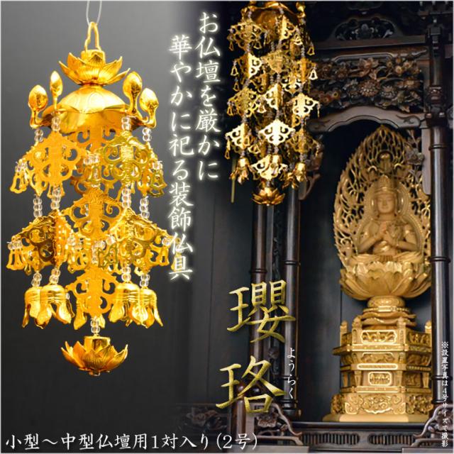 全宗派対応【クリアビーズ入りアルミ瓔珞(ようらく)1対 2号サイズ】大型仏壇・唐木仏壇・金仏壇・仏具 送料無料