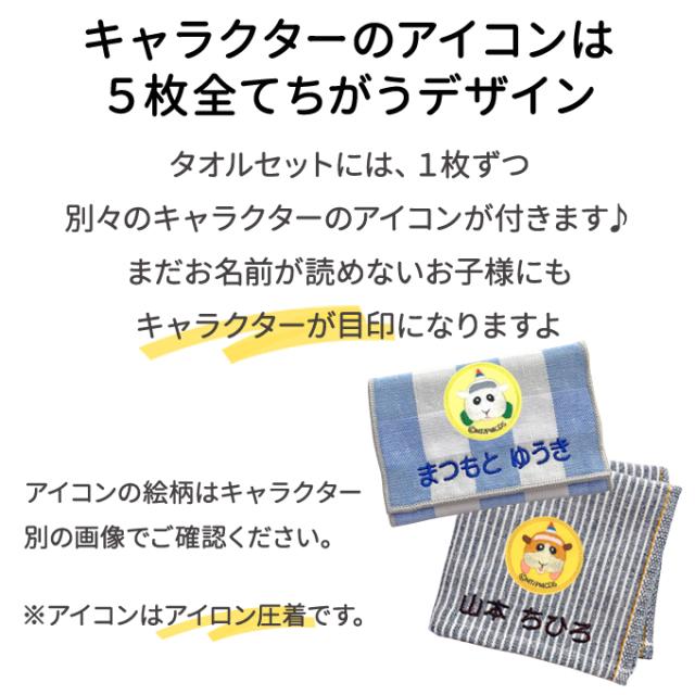 | セット内容 | 5枚セット ※タオルは4色から選べます |