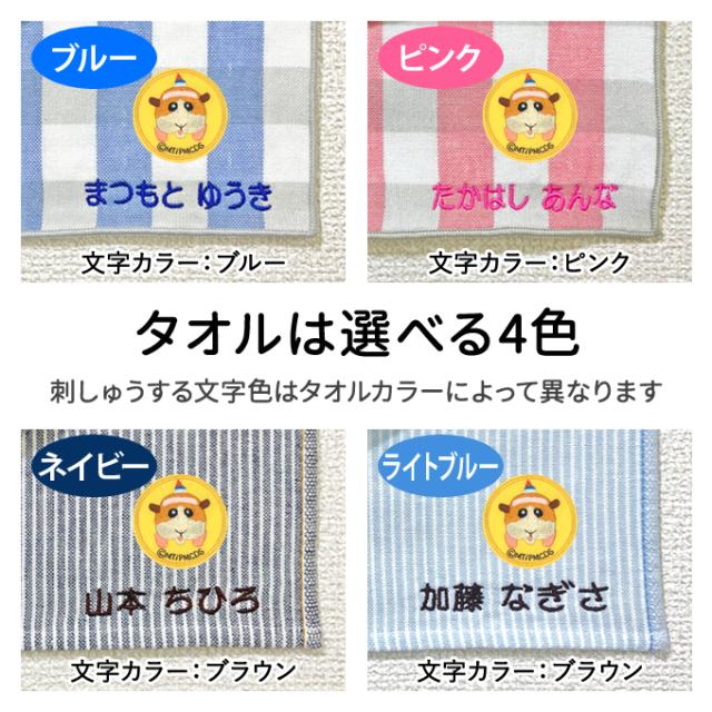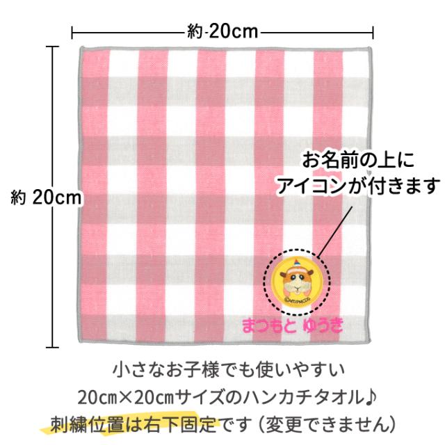 | 商品について | 片面ガーゼ仕様のアイコン付きタオルが新登場♪ 表面はコットンガーゼ、裏面はふわふわのパイル地仕様で、やさしい手触りと使い心地のタオルです。 1枚ずつ丁寧にお名前を刺繍してお届けしますので、面倒なお名前つけの必要がありません。 刺繍なのでお洗濯をしてもお名前が消えることなく、長くお使いいただけます。 発売元:バンダイ |