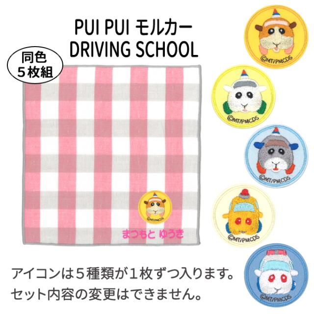 名入れ 刺繍 ハンカチタオル PUI PUI モルカー DRIVING SCHOOL 5枚 名前 子供 男の子 女の子 ギフト ハンドタオル キャラクター OR
