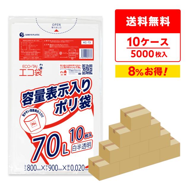 【まとめて10ケース】KC-73-10 東京都容量表示ポリ袋 70リットル 0.020?o厚 白半透明 10枚x50冊x10/ ゴミ袋 ごみ袋 送料無料