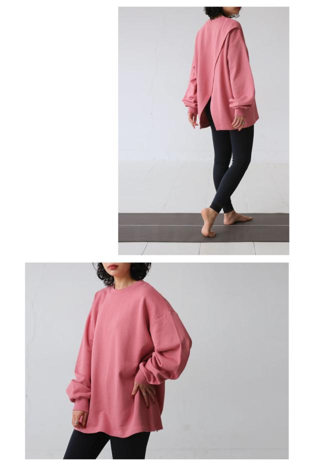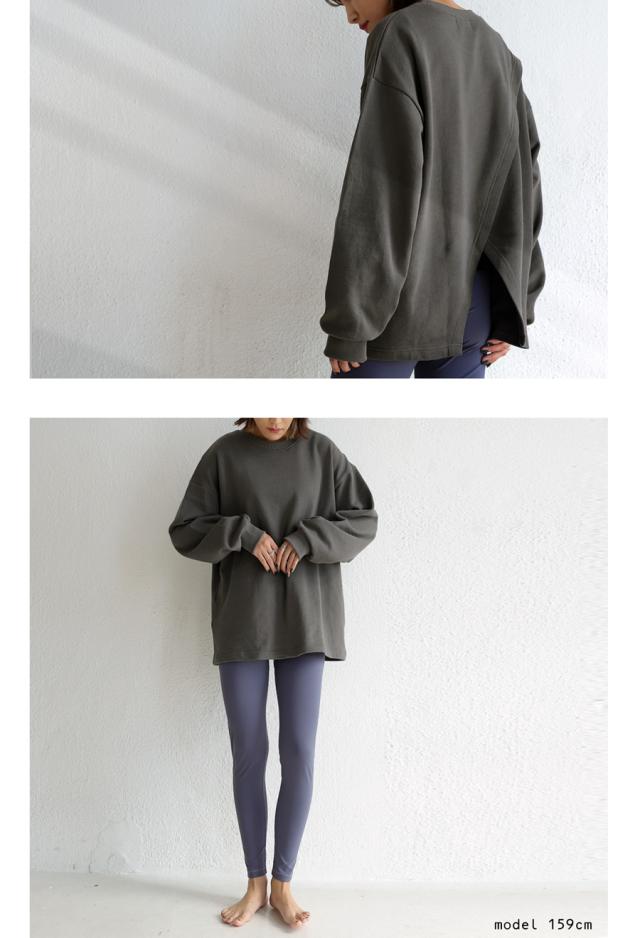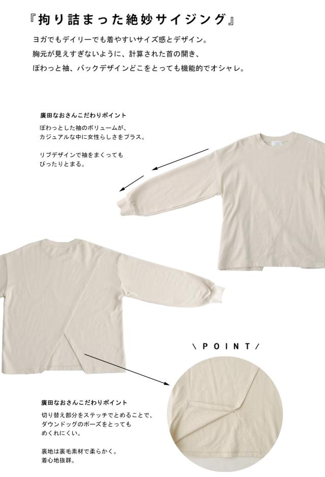 hke-2009 廣田なお 美筋ヨガ トップス レディース 綿100 ゆったり 裏毛 スウェット トレーナー ヨガウェア マルチウェア バックデザイン ボリューム袖 ヨガ スポーツ 運動