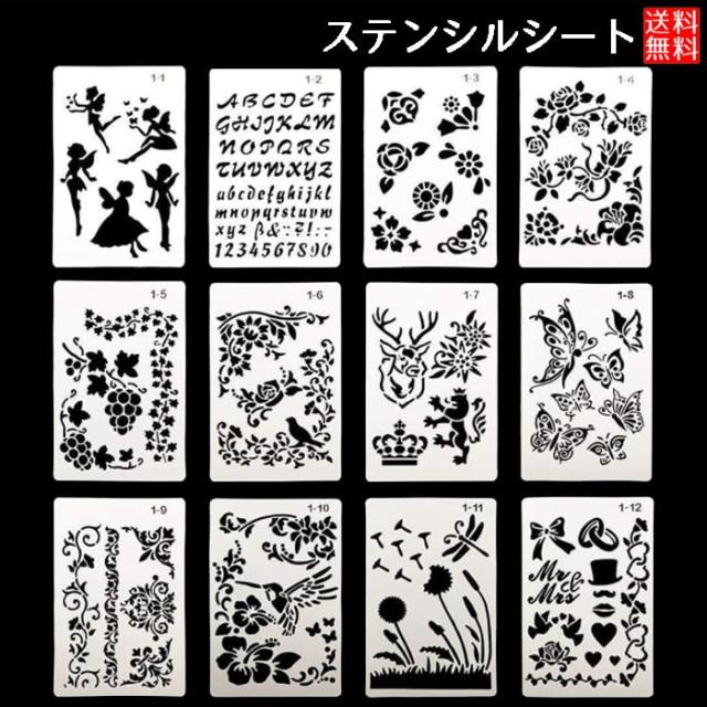 たっぷりいろいろ使えるステンシルシート12種類セットです。
