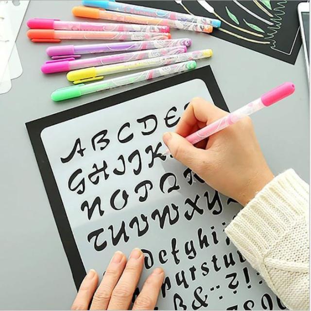 ステンシルシート 文字 ステンシル テンプレート ステンシルプレート アルファベット 数字 12枚組