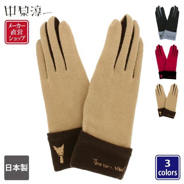中原淳一 レディース 女性用 婦人 手袋 ジャージ手袋 秋冬 五本指手袋 オリジナルボックス付き ガーリー バイカラー 猫 日本製